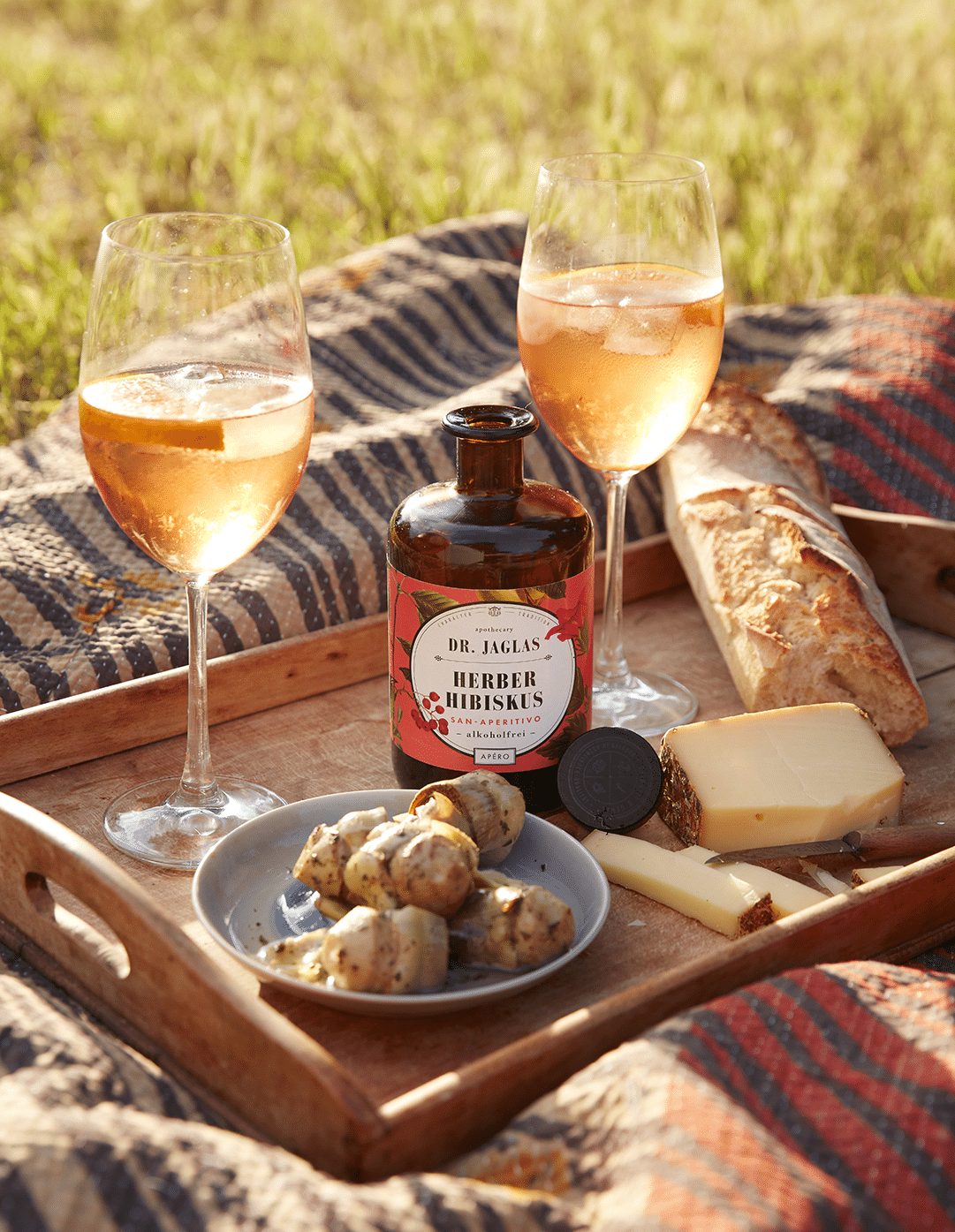 Een Aperol Spritz is een van de populairste drankjes in menig bar. Alleen alcoholvrij blijft het goed zoeken, maar met de Herber Hibiskus van Dr. Jaglas kom je wel heel dichtbij. Zoals een goed apotheker betaamt, de concentratie van deze drank is ongekend. Krachtig, lang en super zuiver. De zoete zuurheid van de hibiscusbloemen wordt afgerond met rozemarijn, bittere sinaasappel, vanille en vlierbessen. De alcoholvrije Aperol kan perfect geserveerd worden met tonic en limoen als hibiscus spritz.