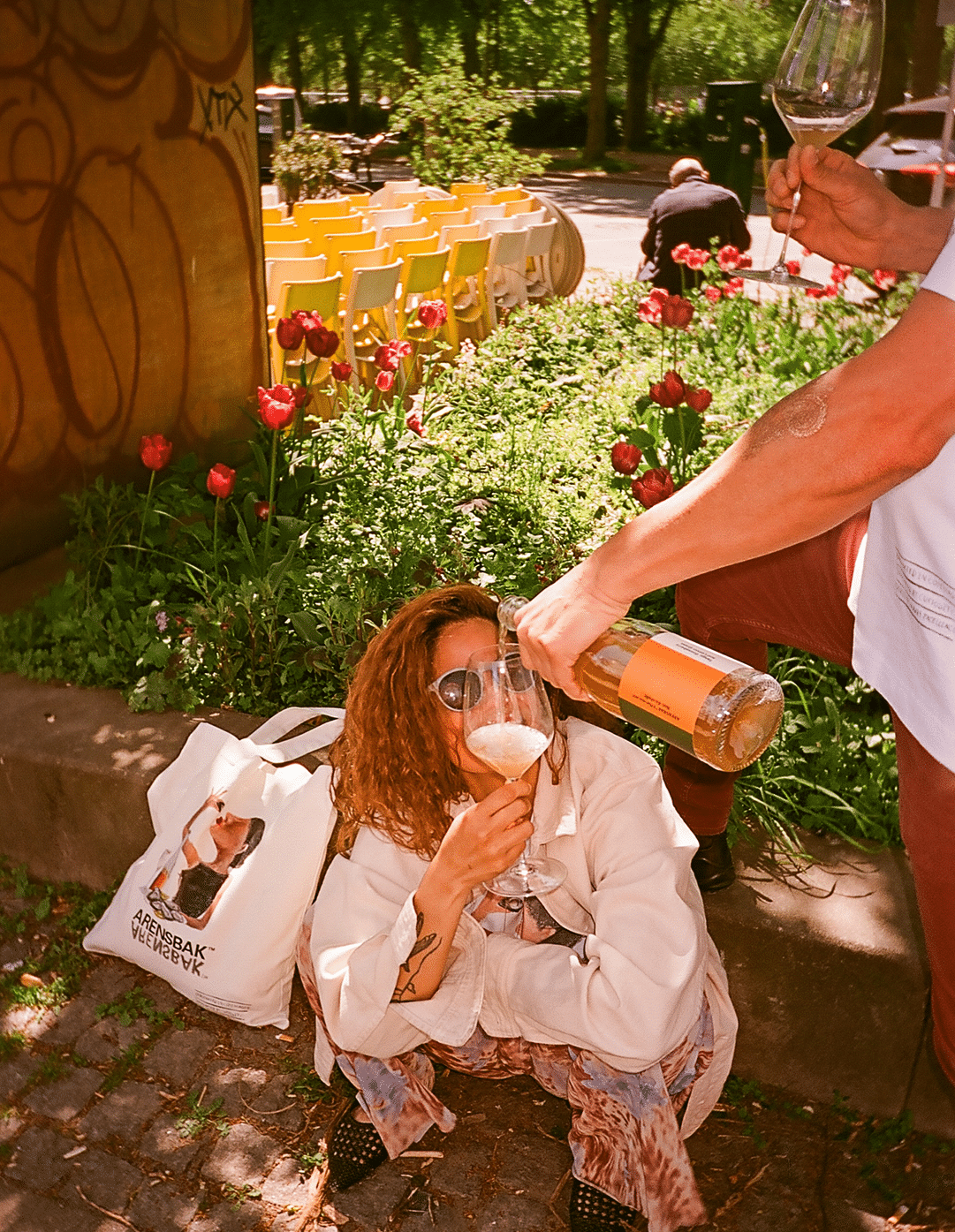 “ARENSBAK. Wine Proxy. Een plaatsvervanger voor wijn. Een alternatief. Géén druiven. Géén alcohol. Maar wél vergelijkbaar in smaak en drinkmoment. Gemaakt door sommelier Emilie Øst-Jacobsen en fermentatiekoning Bram Kerkhof die beiden flink wat ervaring lijken te hebben in high-end-restaurants in Kopenhagen. Op zoek naar een smaakvolle drinkervaring zonder alcohol, viel de keuze op thee als basis voor deze dranken. Net als druiven kan thee complexiteit hebben, maar ook zuren, tannine en een enorme diversiteit aan aroma’s. Wat gebruik van eikenhout geeft de structuur echt een essentie van wijn. ARENSBAK Effervescent is gemaakt op een basis van kombucha van groene Wuniuzao Longjing-thee uit de regio Zhejiang. Een vroeg geoogste thee met dikke groene bladeren die een wat robuuster en notig karakter hebben. Krokant fruit. Gedroogd gras en bloemen. Gistig. Fijne bitters. Kruisbessen, perzik en citroengras geven dit bubbelwijn-alternatief energie. Elegant, levendig en fris. Proost!”