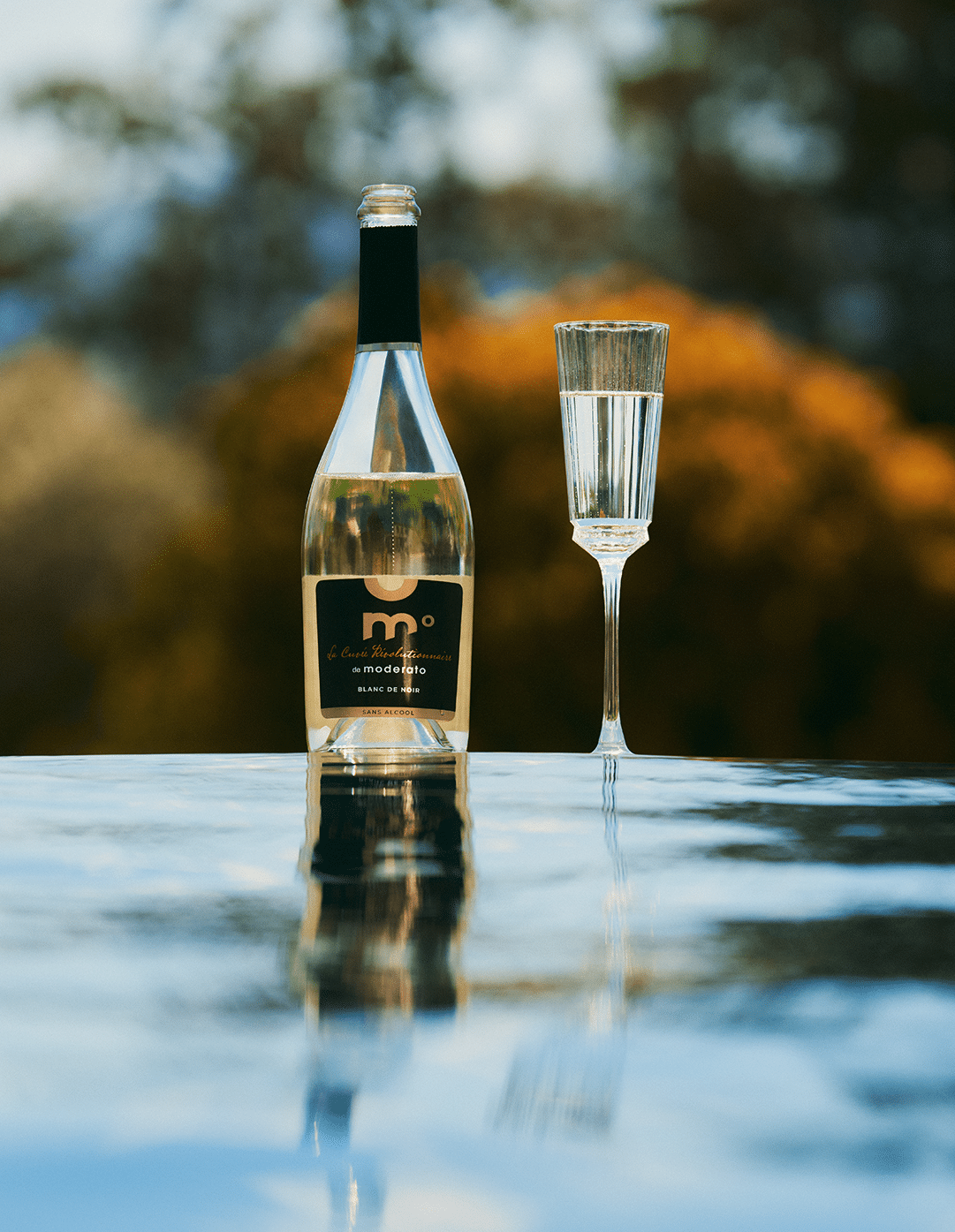 Moderato legt met zijn La Cuvée Révolutionnaire de lat een stuk hoger. Gemaakt met de allerlaatste technieken van de-alcoholiseren. Eerst is er de klassieke de-alcoholisatie, zoals de meeste alcoholvrij wijnen gemaakt worden. Bij de eerste minuten van deze de-alcoholisatie worden de aroma’s apart gehouden en toegevoegd aan de alcohol die van de wijn gescheiden is. Daarna wordt de alcohol, met de aroma’s weer toegevoegd en de wijn opnieuw gede-alcoholiseerd en dan blijven de aroma’s wel in de wijn. Het gevolg: een alcoholvrije wijn die écht naar wijn ruikt! De mousserende La Cuvée Révolutionnaire is een ‘blanc de noir’, oftewel een witte wijn van blauwe druiven, in dit geval merlot uit de Bordeaux streek. Het is een alcoholvrije (<0,5%) bubbel die opvallend veel geur heeft met expressieve tonen van gekonfijt fruit, ondersteund door hints van zoete amandelen. In de smaak heeft de wijn een mooie, ronde, fruitige structuur, versterkt door fijne belletjes die het gehemelte vullen en een lange afdronk geven.